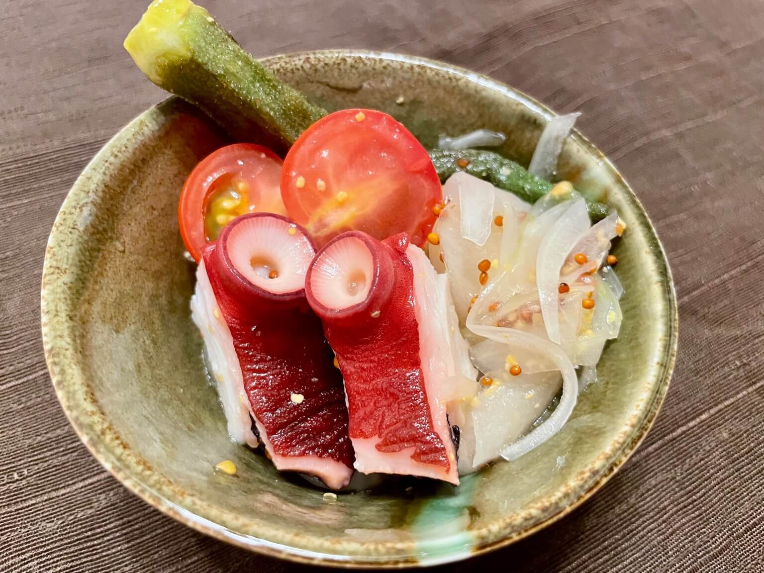 焼きオクラとタコのマリネは