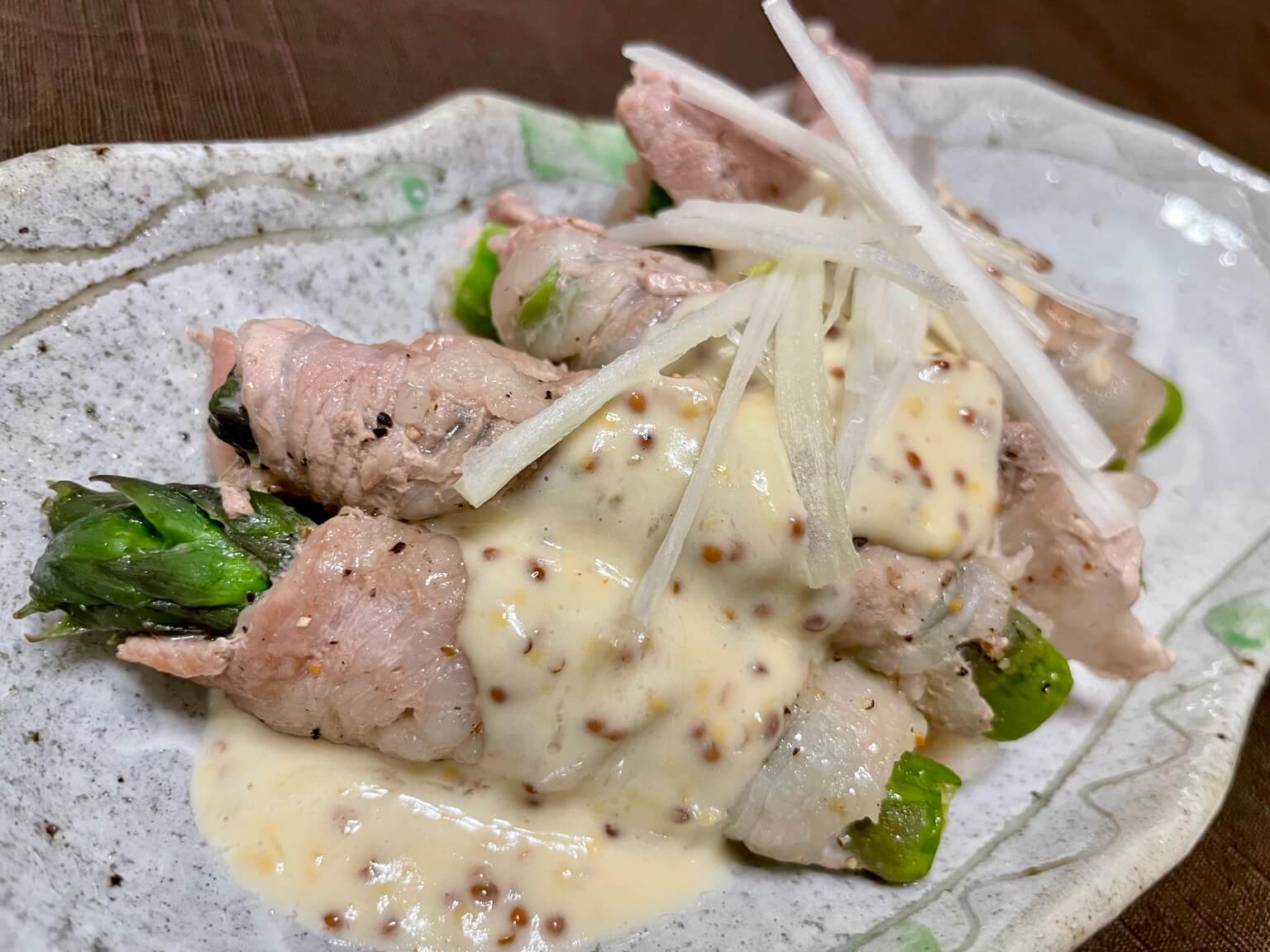 涼性のアスパラガスに、温性の豚肉と長ねぎを合わせることで、冷えと熱のどちらかに偏りすぎない構成に。